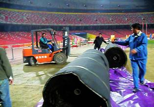 中国国家体育场(鸟巢)人造草坪工程施工照片