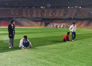 中国国家体育场(鸟巢)人造草坪施工照片: